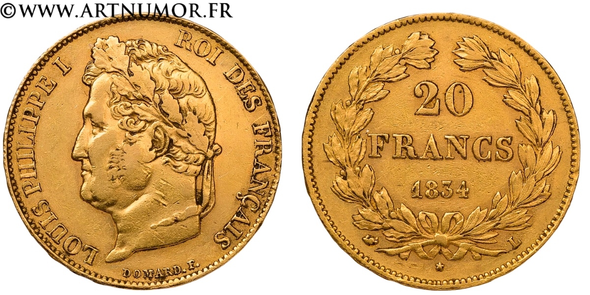 Louis Philippe - 20 Francs Or, 1834 L Bayonne