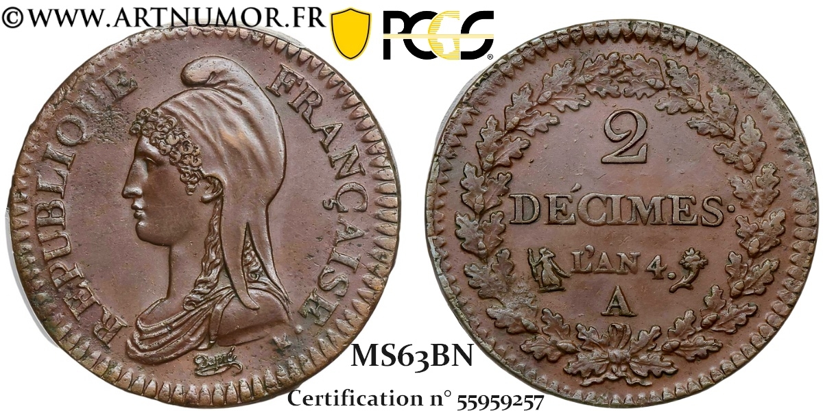 Directoire - 2 Décimes, l'An 4 A Paris | PCGS MS63BN