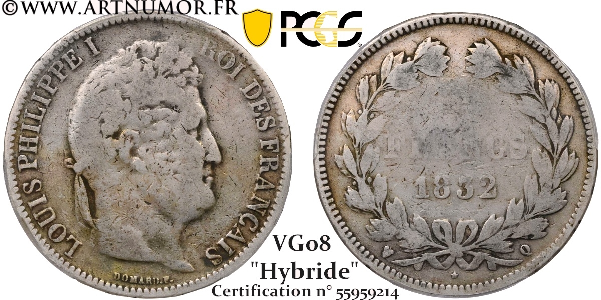 Louis Philippe I - 5 Francs "Hybride", 1832 Q Perpignan | PCGS VG08