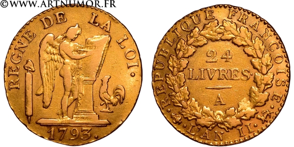 | Revers | 24 LIVRES | dans une couronne de chêne. |