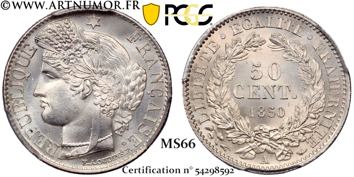 Cérès - 50 Centimes, 1850 A Paris | PCGS MS66