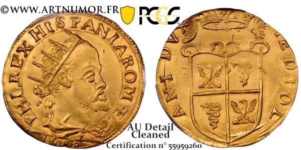 Italie - Duché de Milan, Philippe II d'Espagne, Doppia 1588 | PCGS Au Detail