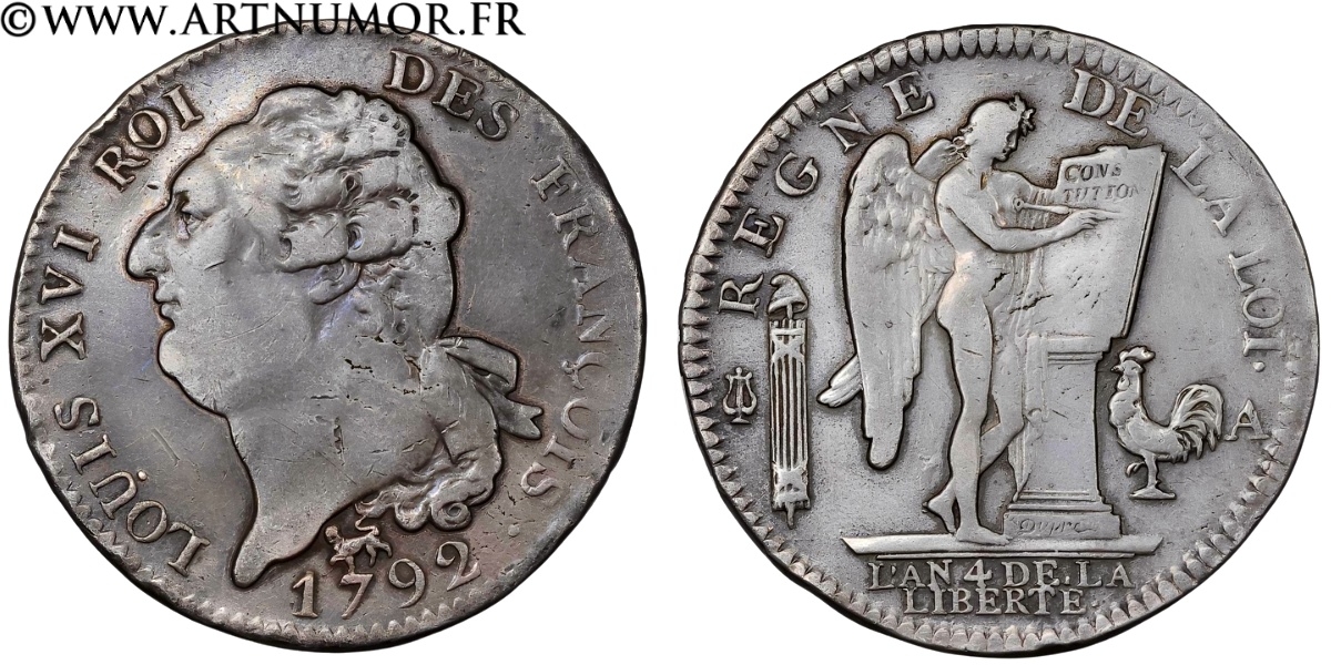 Constitution - Louis XVI, Ecu de 6 livres "François" 1792 A Paris