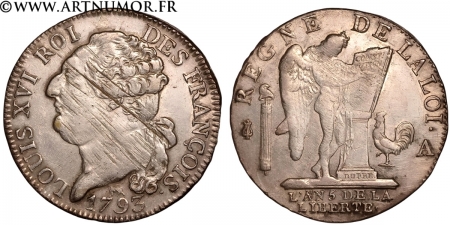 | Avers | Tête à gauche de Louis XVI, les cheveux noués par un ruban sur la nuque |
