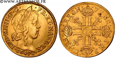 Louis XIV - Louis d'or à la mèche longue, 1647 B Rouen