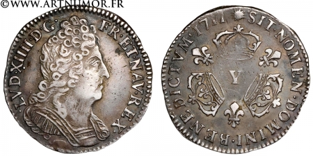 Louis XIV - 1/10 d'écu aux 3 Couronnes, 1711 Y Bourges