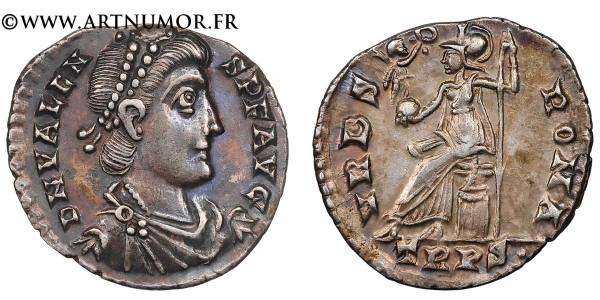 | Avers | Buste diadémé, drapé et cuirassé de Valens à droite |