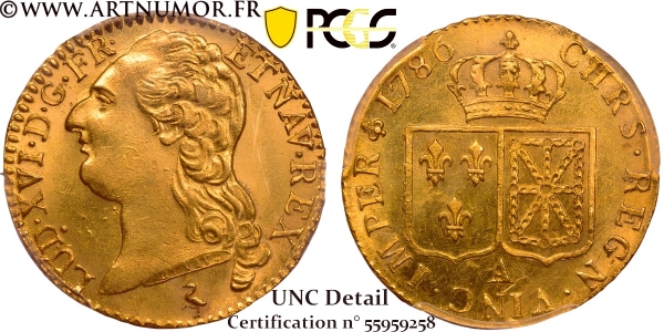 Louis XVI - Louis d'or à la tête nue,1786 A Paris | PCGS UNC Detail