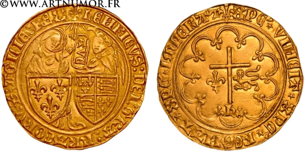 | Avers | L'archange Gabriel visitant la Vierge, les personnages sont vus à mi-corps et placés derrière les écus accotés de France et de France-Angleterre. |
