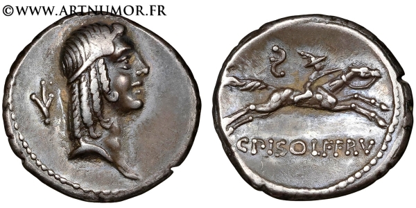 | Revers | Cavalier nu galopant à droite, tenant une palme terminée par une bandelette de la main droite |