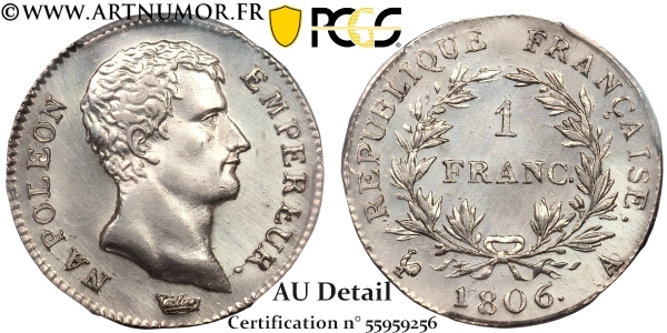 Napoléon Empereur - 1 Franc, 1806 A Paris | PCGS AU Detail