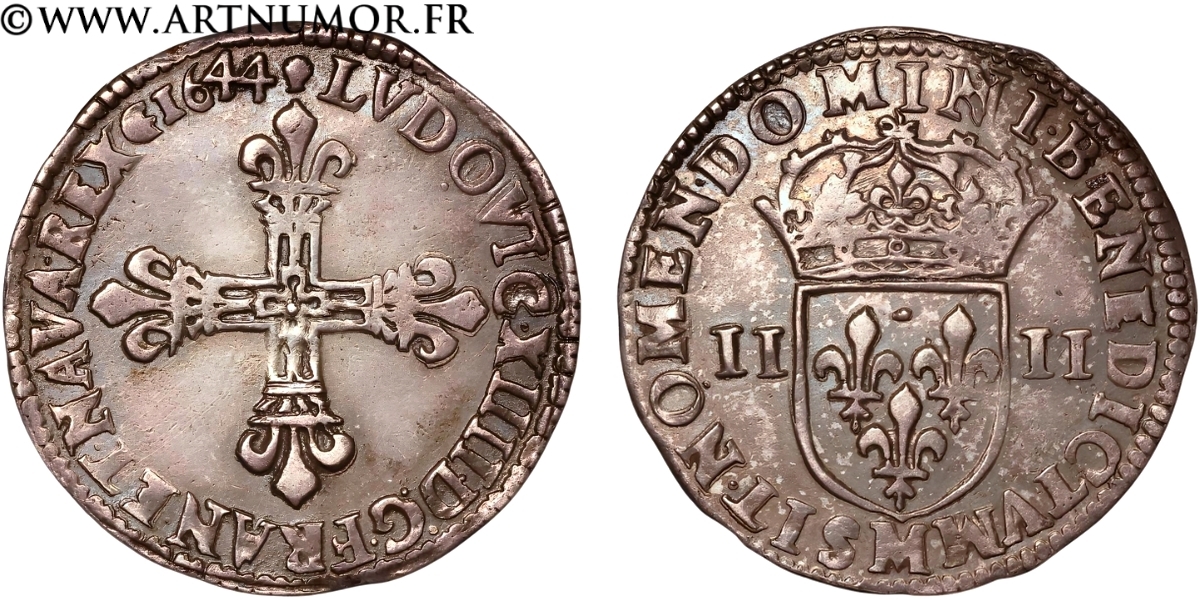 Louis XIV - Quart d'écu au marteau, 1644 M Toulouse