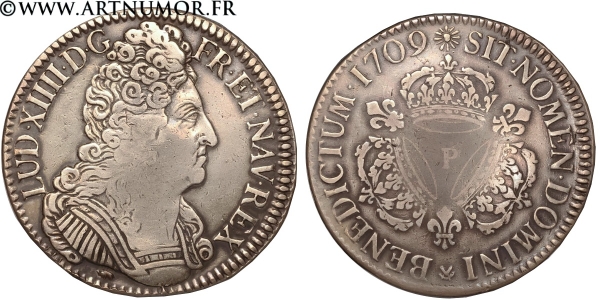 Louis XIV - Écu aux 3 Couronnes, 1709 P Dijon