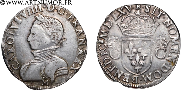 | Avers | Buste de Charles IX à gauche, lauré et cuirassé |